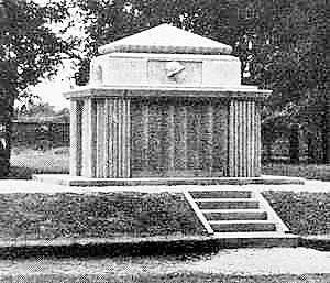 Ehemaliges Denkmal für die Gefallenen des 1. Weltkriegs: Auf einem Erdhügel großer Quader mit pyramidenförmigem Oberteil. Unten 662 Namen an den länglichen Seiten und Widmungen auf den kurzen Seiten. Am Oberteil Reliefs von Soldatenkopf mit Stahlhelm und Adler (abgerissen).