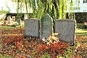 Auf dem Friedhof steht das Denkmal für die Gefallenen des Zweiten Weltkriegs. Mittig steht ein Feldstein mit Widmung, zu beiden Seiten je ein roter polierter Stein mit Namen.