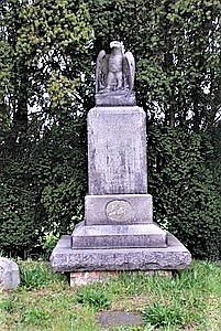 Auf dem Friedhof neben der Kirche steht ein Steinquader auf einem treppenförmigen Fundament. Oben bekrönt von einem steinernen Reichsadler.