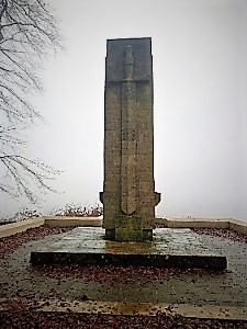 stehende Ehrenmal besteht aus einer quadratischen Säule (ca. 5 Meter hoch) aus Muschelkalkstein. Auf der Nordseite