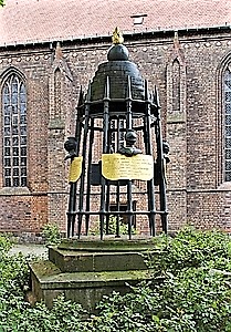 Denkmal für die Spandauer Gefallenen des Napoleonischen Russlandfeldzuges 1812 und der Befreiungskriege 1813-1815. Rundes Gitter aus 12 Lanzen, die ein Schild tragen, das von einer flammenden Kanonenkugel gekrönt wird. An vier Seiten sind Plaketten mit Ritterhelme angebracht von denen drei Widmungen und Namen tragen und eine ein Eisernen Kreuz zeigt.