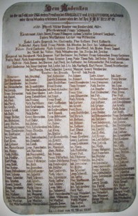 Dem Andenken an die im Feldzuge 1866 gegen Preussen, bei Königgrätz und Aschaffenburg gefallenen oder ihren Wunden erlegenen Kameraden des Inf. Reg. F. M. Baron Hess Nr. 49 – Errichtet am 13. Mai 1880