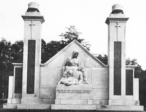 Das Bild des 1. Weltkriegs entstammt dem Buch: „Deutscher Ehrenhain für die Helden von 1914/18“ im Dehain Verlag, Leipzig 1931. Dort ist vermerkt, dass dieses Denkmal vom Bildhauer Professor H. Dammann in Berlin entworfen wurde.