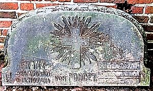 Einzelner Grabstein an der evangelischen Dorfkirche St.Pankratius, vermutlich Rest eines größeren Grabmals.