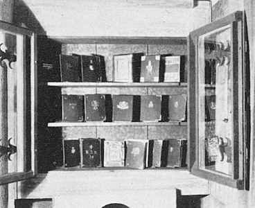 Sogenannter „Heldenschrank“ mit ungefähr 20 Gedenkbüchern in denen die Gefallenen aufgelistet wurden, darunter: Gedenkbuch des Reserve-Feld-Artillerie-Regiments Nr. 3: mit Metall beschlagenes Gedenkbuch mit soldatischen Motiven. Gedenkbücher des R.I.R 9 und des L.I.R. 9, sowie des Gr.R. 2, I.R. 2, I.R. 14, Füs.R. 38, R.I.R. 210, R.I.R. 267, F.A.R. 38, F.A.R. 53, R.F.A.R. 67, Pion.-Batl. 2, Drag.R. 3 und wahrscheinlich aller anderer Regimenter die in den Widmungen in der Kirche erwähnt werden.