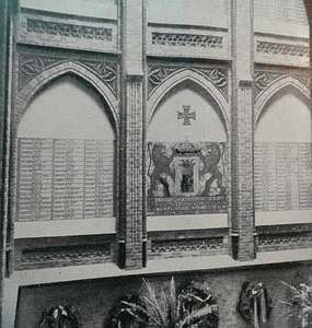 Das Bild entstammt dem Buch: „Deutscher Ehrenhain für die Helden von 1914/18“ im Dehain Verlag, Leipzig 1931. Dort ist nicht vermerkt, ob die Namen im Rathaus oder einem anderen öffentlichen Gebäude angebracht waren. Leider ist die Inschrift nicht lesbar.