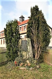 Betondenkmal mit eingesetzter Namenstafel Trünziger- Ecke Grundstraße.