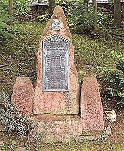 Denkmal-Nr.: 09247060 Unterhalb der Kirche gelegen, ortsgeschichtlich von Bedeutung. Schlichtes Denkmal aus Rochlitzer Porphyr, grob behauene Steine flankieren einen obeliskartigen Stein mit Inschrifttafel aus Bronze. Diese ist verwittert und die Daten sind nicht alle lesbar.