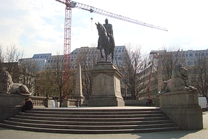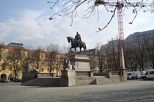 Denkmalanlage auf dem Karlsplatz neben dem alten und neuen Schloss im Zentrum. Im Mittelpunkt steht eine Reiterfigur, an deren Sockel wahrscheinlich früher Namens-oder Regimentstafeln angebracht waren. Rechts und links hinter der Reiterfigur befinden sich zwei Obelisken mit den Inschriften des Kriegsverlaufs.