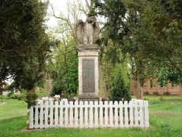Hauptstraße, links neben der Kirche: Ehrenmal für den Ersten und Zweiten Weltkrieg: Stele mit Adler. Die Namen des Ersten Weltkrieges auf Metalltafel auf der Stele, unter der jeweiligen Jahreszahl die Namen mit Todesdatum. Inschrift für den Zweiten Weltkrieg auf Metalltafel im Sockel. Links an der Stele ein eingemeißelter Lorbeerkranz.