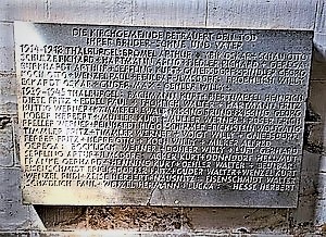 Da hier nicht erkennbar stammt der Anfangsbuchstabe von CYBIK von der Tafel auf dem kommunalen Friedhof, der entwidmet und geschlossen wurde. In der örtlichen Presse wurde nur berichtet, dass der Gedenkstein für die fünf ermordeten Buchenwaldhäftlinge (Todesmarsch) umgesetzt werden soll, jedoch nichts über den Verbleib der beiden erst 2012 sanierten Gedenktafeln mit den Namen der Opfer des Ersten Weltkrieges.