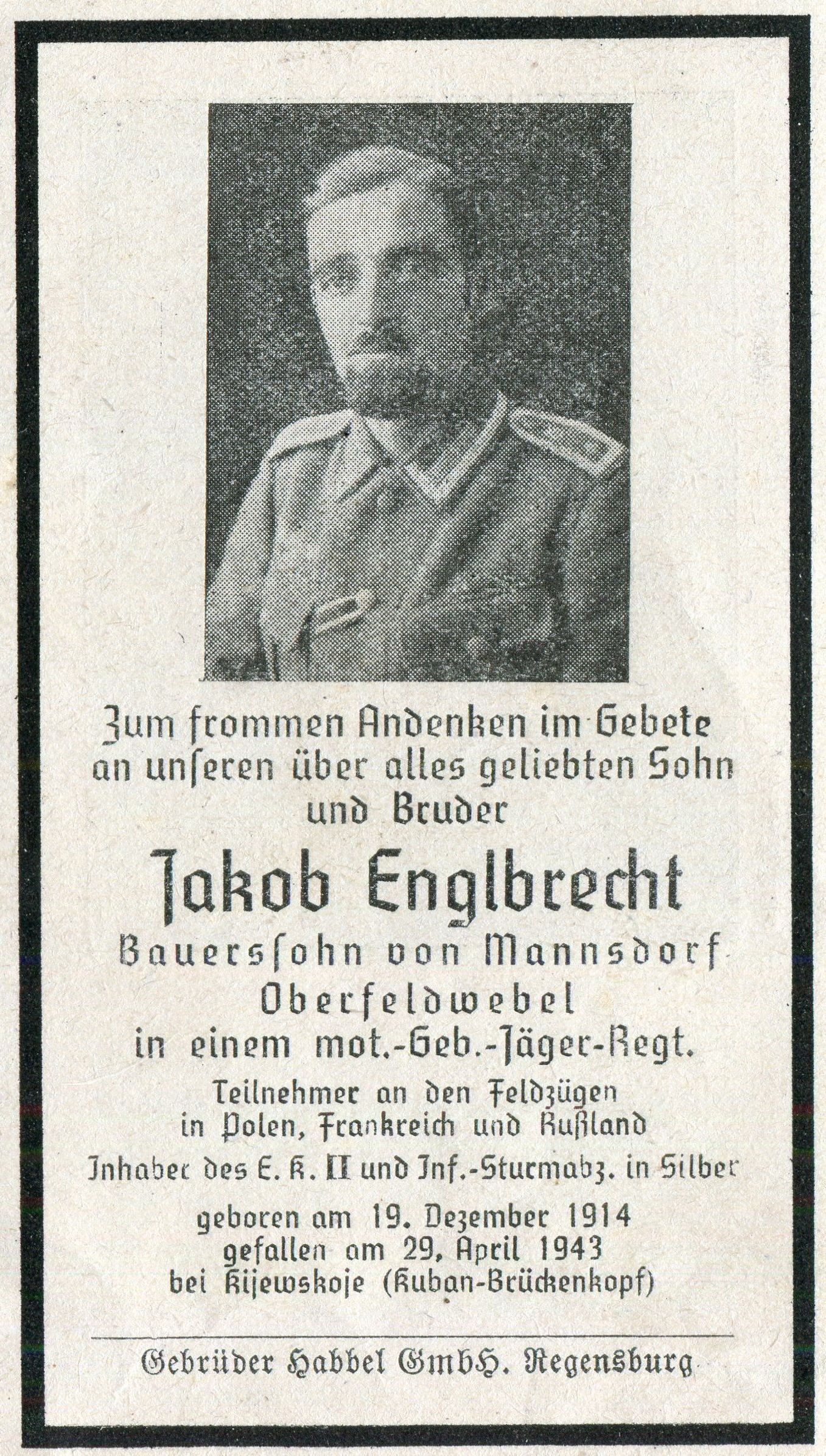 Bauerssohn aus Mannsdorf. Inhaber EKII, ISA in Silber. Feldzugteilnehmer in Polen, Frankreich, Russland.
