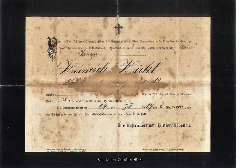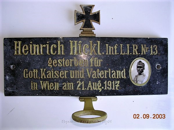 21.08.1917 in Wien für "Gott, Kaiser und Vaterland" gestorben ist. Wir haben das beim österr.