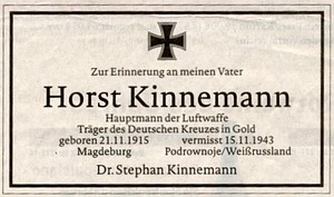 Zur Erinnerung an meinen Vater (Name, Daten) Träger des Deutschen Kreuzes in Gold