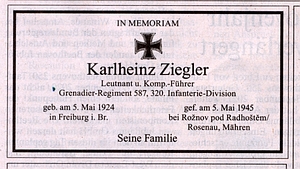 Erinnerungsanzeige am 5.5.2020 in der FAZ.