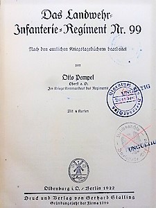 Quelle: Oberst a. D. Otto Pempel. „Das Landwehr-Infanterie-Regiment 99“ aus der Buchreihe