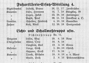 Die Toten des Garde-Fussartillerie-Regiments und seiner Kriegsformationen 1914-1918 |