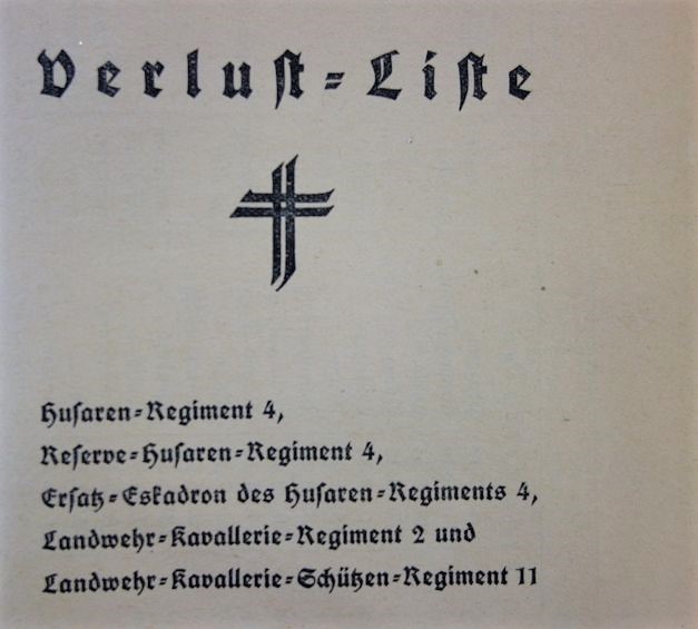 Verlustliste Landwehr-Kavallerie-Regiment Nr. 2 und Landwehr-Kavallerie-Schützen-Regiment Nr. 11