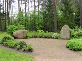Zwei Findlinge auf dem Friedhof von Vögelsen mit den Namen der Gefallenen in schwarzen Buchstaben.