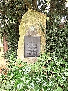 Denkmal-Nr.: 09232432 Ortsgeschichtlich von Bedeutung. Granitstein als monolithische Stele mit Bronzekreuz und Steintafel (schwedischer Marmor, schwarz), Schrift poliert auf rauem Grund. Inschrift und vier Namen mit Gefallenendatum