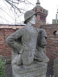 dargestellt als Soldat mit Helm und Ausrüstung und authentischer Kopfbüste; „…er kämpfte den guten Kampf des Glaubens und er griff das ewige Leben, bestattet bei Arras“; ruht auf der Kriegsgräberstätte Neuville - St. Vaast, Block 3, Grab 430