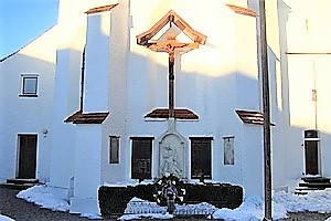 Denkmal und Gedenktafeln an der Ostseite der Pfarrkirche St. Ulrich; Denkmal für die Gefallenen des Ersten Weltkrieges im Vorraum der Kirche.