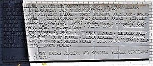 DEN GEFALLENEN VÄTERN UND SÖHNEN UNSERER HEIMATVERTRIEBENEN MITBÜRGER IN EHRFURCHT UND DANKBARKEIT GEWIDMET. (Namen) NICHT RACHE FORDERN WIR SONDERN SUCHEN VERGEBUNG IN DER LIEBE CHRISTI.