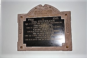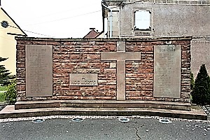 Denkmal im Ortskern Gedenktafel in der evangelischen Kirche