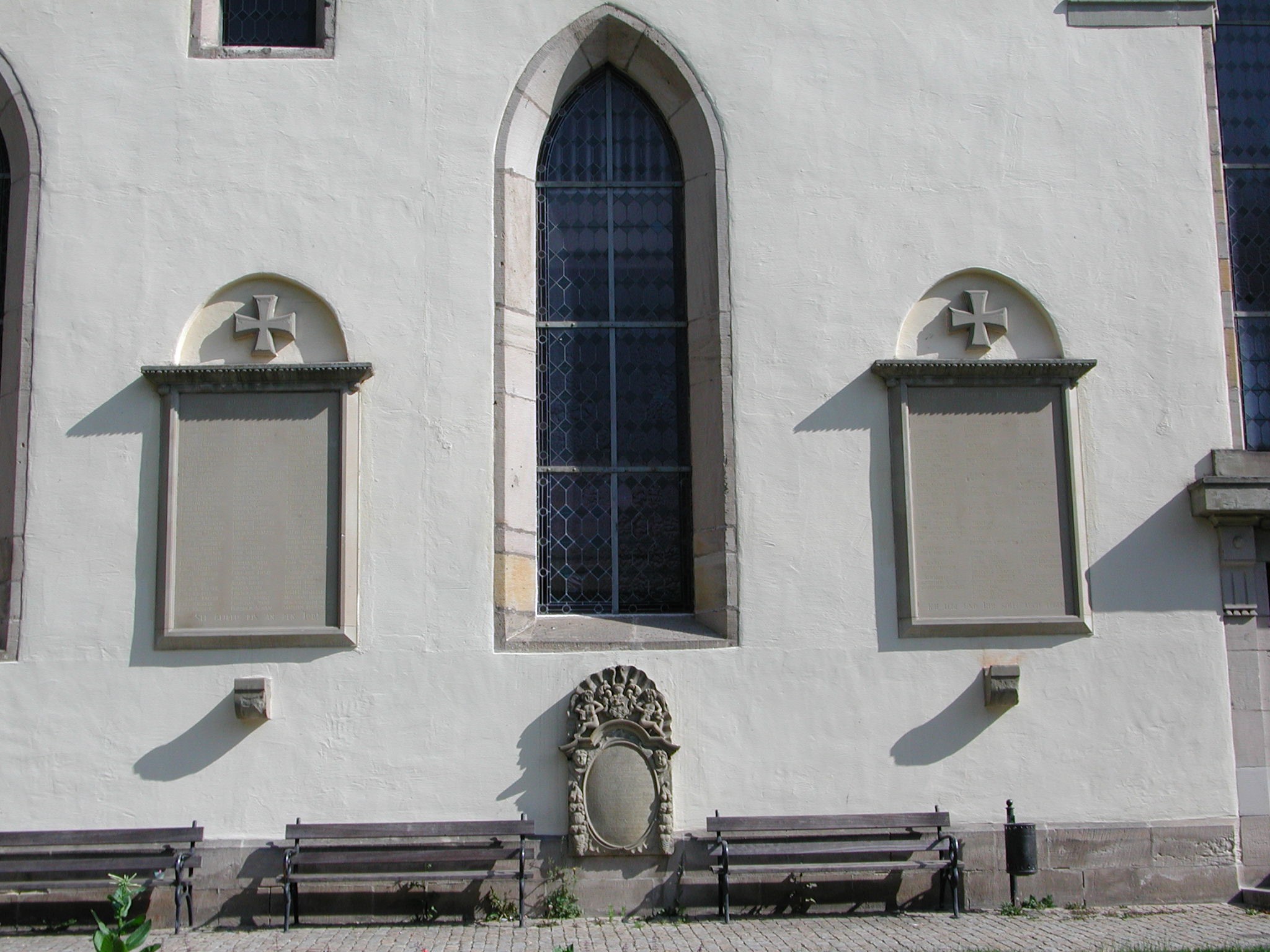 Zwei Wandtafeln an der Außenwand der ev. Kirche St. Gallus.