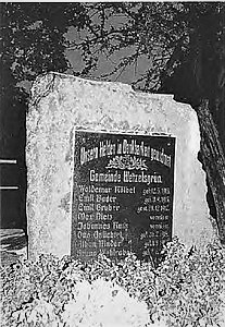 Denkmal-Nr.: 09233938 Einfacher Feldstein mit Schrifttafel, von örtlicher Bedeutung.