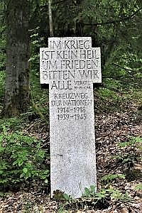 Gedenkstein 1 Im Krieg ist kein Heil, um Frieden bitten wir alle. (Vergil 70-19 v.Chr.) Kreuzweg der Nationen 1914 - 1918 1939 - 1945