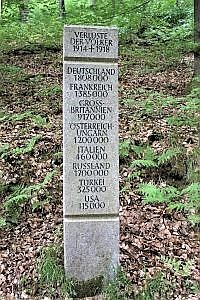 Gedenkstein 2 Verluste der Völker 1914 - 1918 Deutschland: 1'808'000 Frankreich: 1'385'000 Grossbritannien: 917'000 Österreich-Ungarn: 1'200'000 Italien: 460'000 Russland: 1'700'000 Türkei: 325'000 USA: 115'000