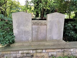 Kirchstraße vor der St. Vitus-Kirche. Ehrenmal in Form eines Obelisken auf einem mehrstufigen Unterbau, es ist für die Gefallenen des Ersten Weltkriegs errichtet worden. Unmittelbar hinter diesem Denkmal befindet sich das für die Toten des Zweiten Weltkriegs, bestehend aus drei Steintafeln mit den Namen von dreiundsechzig Gefallenen.