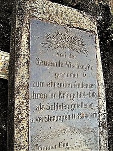 Von der Gemeinde Wischkowitz gewidmet zum ehrenden Andenken ihren im Kriege 1914-1918 als