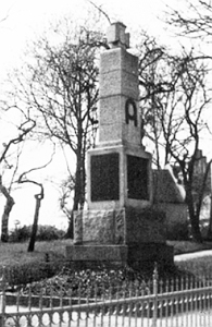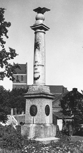 Denkmal für die Gefallenen des Krieges 1870/71: Abgestufter Quader mit Plaketten von Bildnissen der Kaiser, darauf eine klassische Säule mit Widmung und EK-Zeichen, sowie krönendem Adler.