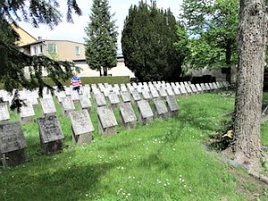 Auf dem Frauenfriedhof befindet sich eine Kriegsgräberanlage für Opfer des Zweiten Weltkriegs. Sie ist räumlich getrennt in den Abteilen 2b und 3b. Für die Opfer steht jeweils ein kleiner Betonstein, darauf eine ca. 25 x40 cm Granitplatte mit Namen, Geburts- und Sterbejahr. Ein Teil ist nicht mehr leserlich, besonders im Abteil 2b, dort befinden sich auch eine größerere Zahl an Platten mit zwei Namen. Abteilung 3b: 183 lesbare, 15 unleserliche Platten. Abteilung 2b: 90 leserliche, 63 unleserliche Platten und eine Platte mit Erinnerung an 23 namentlich unbekannt bestattete Menschen.
