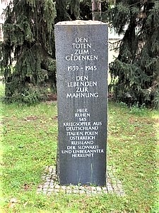 Mittlerer Gedenkstein Den Toten zum Gedenken 1939 – 1945 Den Lebenden zur Mahnung