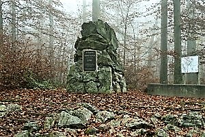 und hinten Gedenktafel, seitlich davon Info-Tafel über den Schlachtenverlauf; zusätzlich Information vom