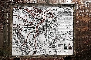 (Auf der Info-Tafel: grün die Bewegungen und Stellungen der Alliierten, rot die der Franzosen)