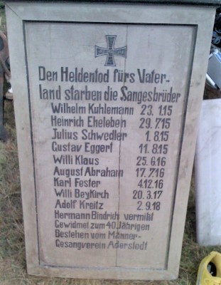 Gedenktafel für die Gefallenen des Männer-Gesangsvereins Aderstedt.