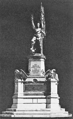 darauf die Figur eines Soldaten des Infanterie-Regiments Nr. 96, der in den Händen eine Fahne und einen erhobenen Helm mit Eichenlaub trug. Sein Fuß stand auf einem Kanonenrohr. Das Denkmal wurde nach 1945 abgerissen.