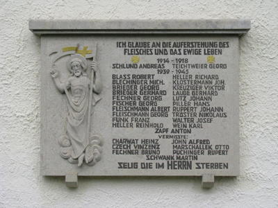 Gedenktafel an der Kirche Mater Dolorosa mit den Gefallenen und Vermissten der Gemeinden Altenhof und Hergramsdorf.