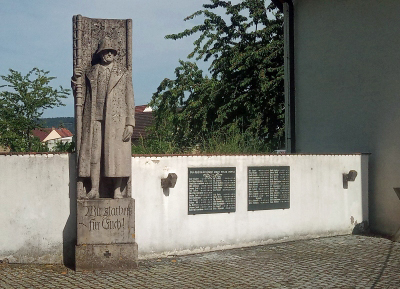 Denkmal neben der sehenswerten Ortskirche: Zwei Gedenktafeln mit den Namen der Gefallenen und Vermissten.