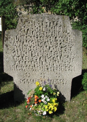 Standort des Denkmals ist auf einer Grünfläche 40 Meter westlich der Kirche an der Wilhelm-von-Stein-Straße.