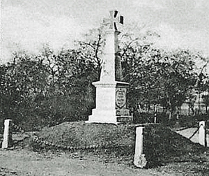 Namen und Inschriften wurden weiß überstrichen und das EK durch ein christliches Kreuz ersetzt.