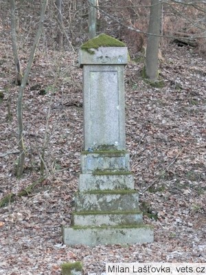 Amonsgrün liegt am Fuße des Slavkov-Waldes ungefähr 15 km südöstlich von Eger und 15 km nordöstlich von Unter Sandau, zu dem es heute gehört. Die Einweihung des Denkmals für lokale Kriegsopfer fand am 21. August 1924 an einem Hang in der Nähe Burgruine Borschengrün im Südwesten von Amonsgrün, einem Teil des Dorfes, statt. Schöpfer war der Steinmetz Hans Zapf aus Unter Sandau. Die Kosten für die Errichtung des Denkmals betrugen 5 000 Kronen, obwohl es sehr einfach konzipiert ist. Das Denkmal mit einer Höhe von etwas mehr als 3 Metern in Form einer rechteckigen Steinstele steht auf einem abgestuften Sockel. In der Mitte des Denkmals war eine Gedenktafel mit Widmung und Namen eingefügt. An der Unterseite war eine kleine Tafel, auf der wahrscheinlich die Widmung stand. Das Denkmal ist unterhalb des oberen Abschlusses mit einem Eisernen Kreuz geschmückt. Rund um das Denkmal befanden sich Granitpfosten, die ursprünglich zu einem schmiedeeisernen Zaun gehörten. Die Inschriftentafeln sind zerbrochen. Ansonsten ist das Denkmal erhalten. Es befindet sich allerdings in einem baufälligen Zustand.