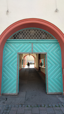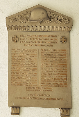 In der Toreinfahrt des Rathauses ist die Gedenktafel für die Beamten und Bediensteten der Stadt angebracht, die im 1. Weltkrieg gefallen sind.