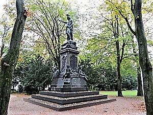Das große „Friedensdenkmal“ steht im Fronhof, einem Park in der Nähe des Doms.