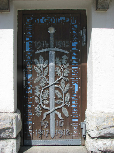 Eine Seitentür ist als Nagel-Denkmal 1914-18 (damals als Nagelspende) ausgeführt. Unweit davon steht eine Gedenk-Glocke.