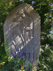 Am Eingang des Friedhofs befindet sich außen ein großer Stein mit einem Relief.